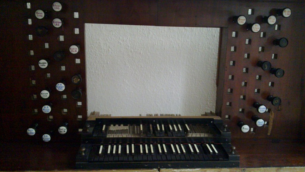 The renewed sun organ of St. Peter and Paul. Some pipes of the pedal mixture are mounted around suns in the face of the organ, just like sun rails. Thus its name: